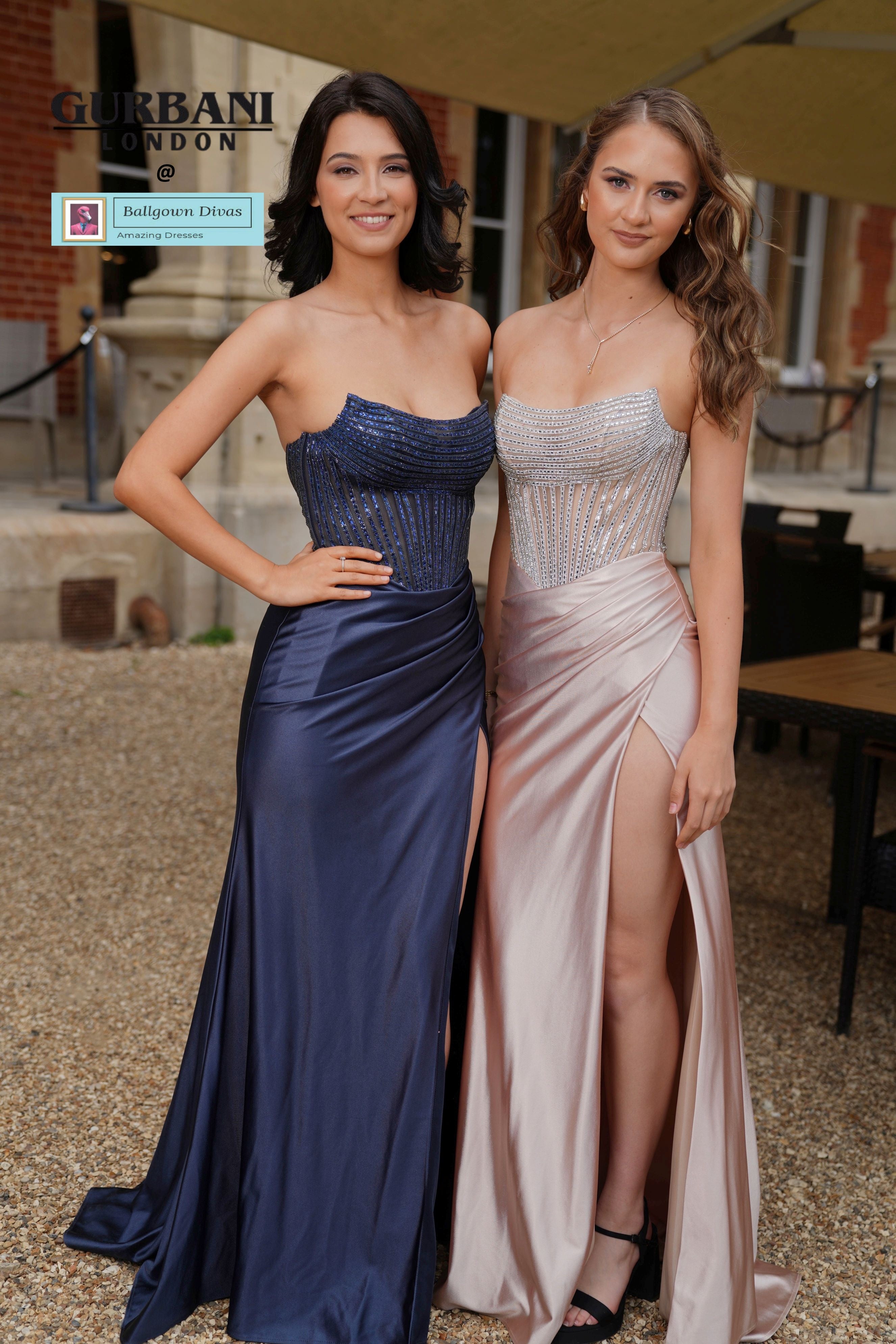 This glamorous fitted jersey prom evening dress features a sparkling diamante bodice that adds a touch of elegance and sophistication. The corset back provides a flattering, adjustable fit, enhancing your silhouette with comfort and style. A front split adds a bold, graceful element, allowing ease of movement while showing off your legs. Perfect for making a confident statement at any special event.