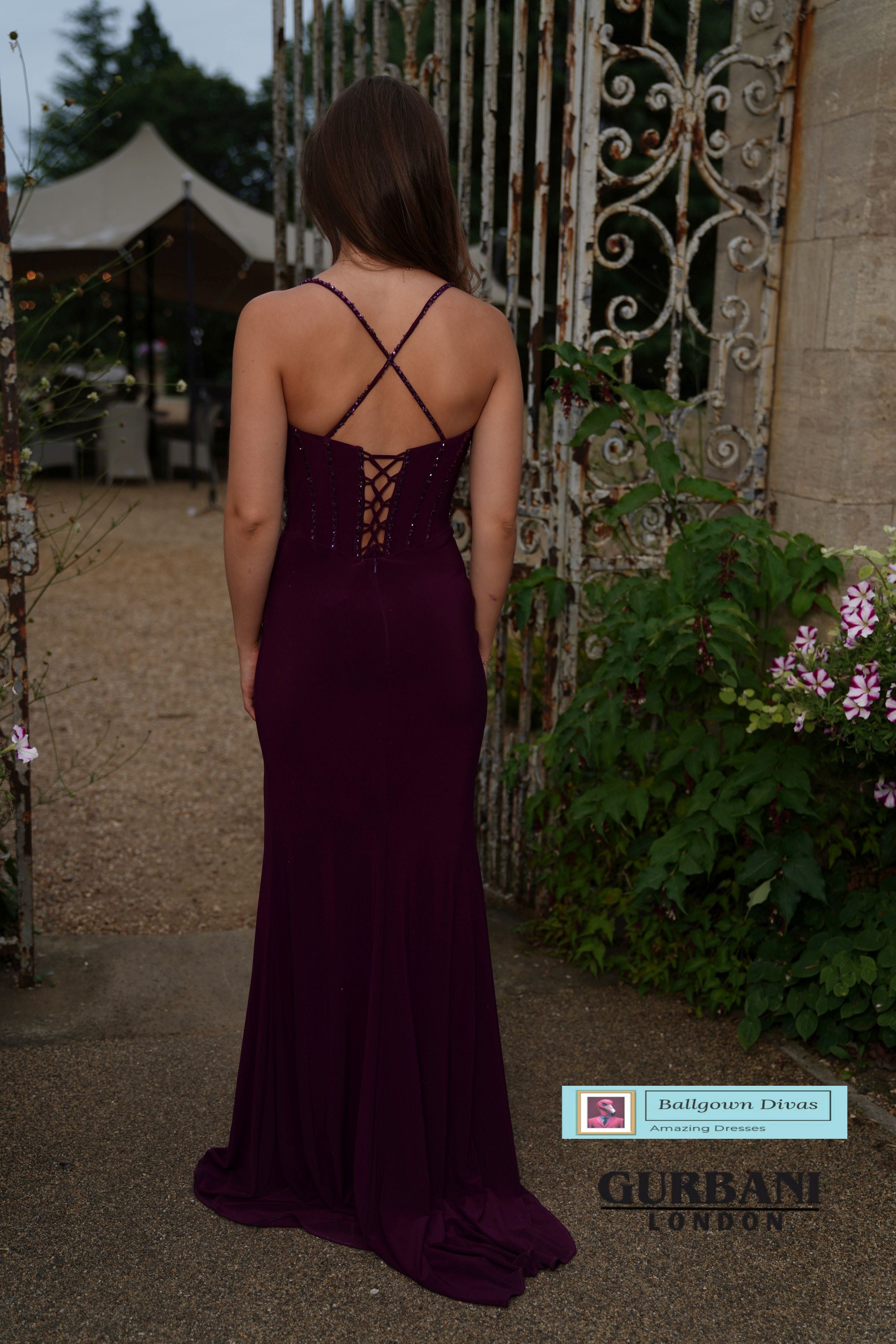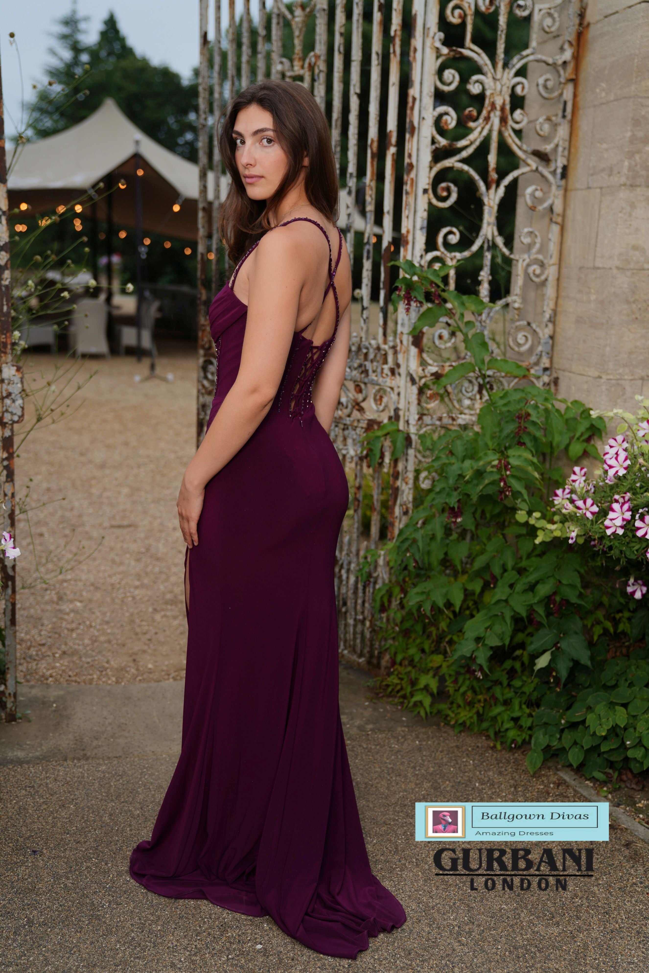 This figure-hugging matte jersey dress features a boned bodice with a sophisticated cowl effect, embellished with sparkling gems for subtle glamour. The mock wrap skirt enhances the silhouette, highlighted by a high split that adds movement and elegance. Designed to flatter and captivate, this dress is designed to be stunning whilst sophisticated....